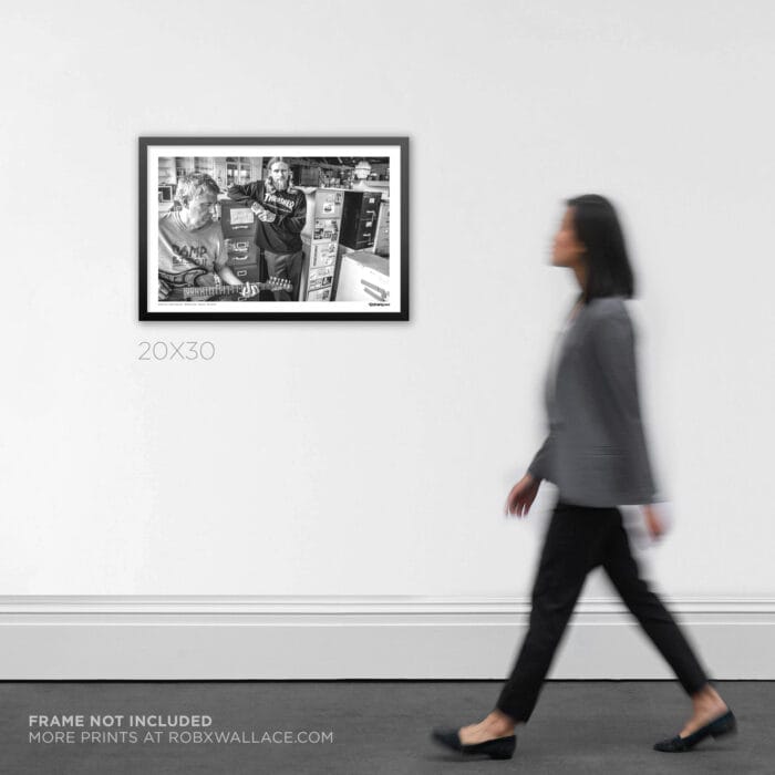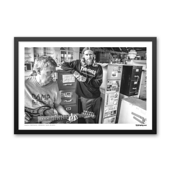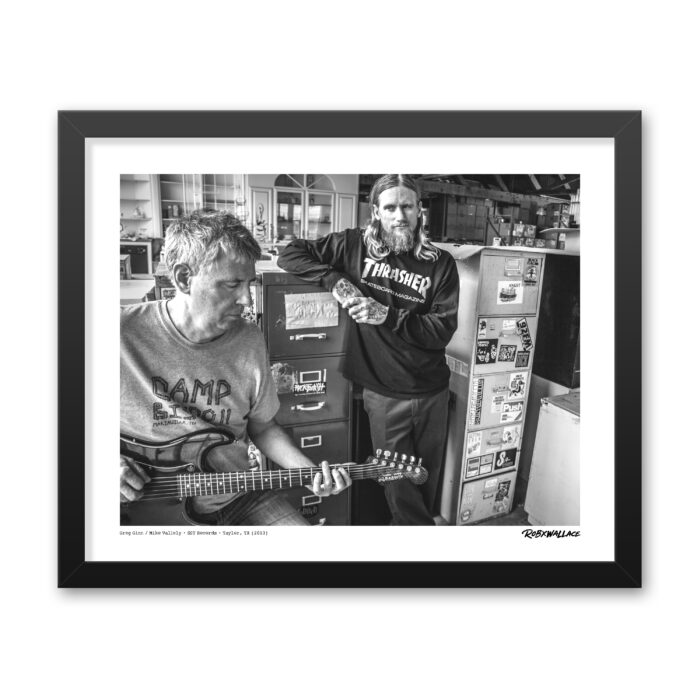This shot of Greg Ginn and Mike Vallely was taken at the SST Records warehouse in Taylor, TX, back in 2013. We were shooting promo photos for a Thrasher Magazine ad to promote the God For You album “Life Is Too Short to Not Hold a Grudge”, and the day had this kind of surreal, fun energy. The warehouse was full of history—rows of records from all the bands on SST that I grew up listening to. Just being surrounded by those albums made it feel like I was stepping into a time capsule of punk rock.