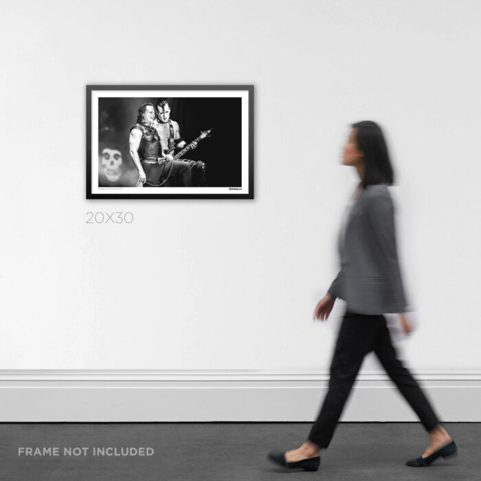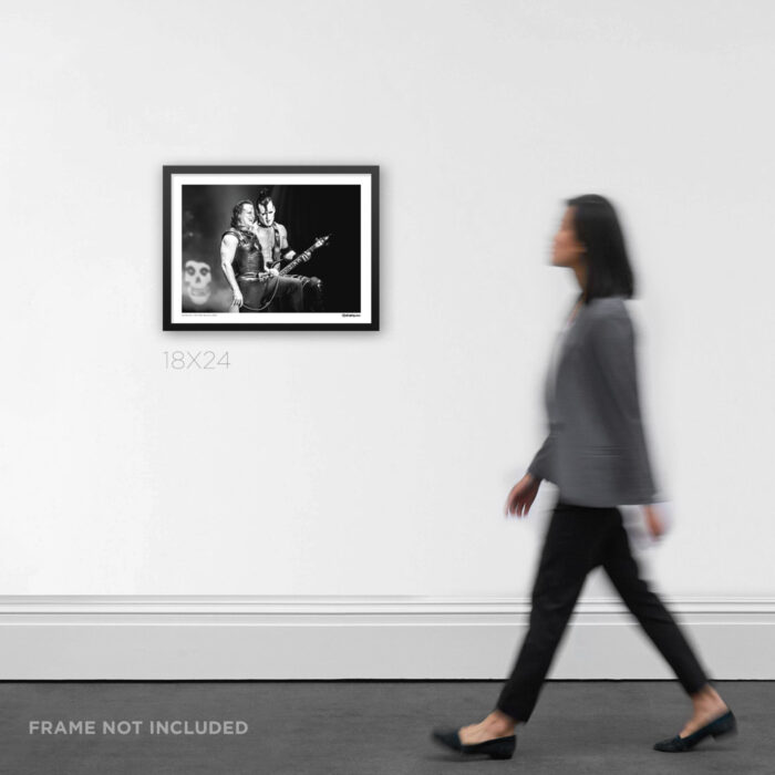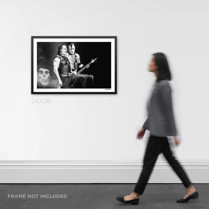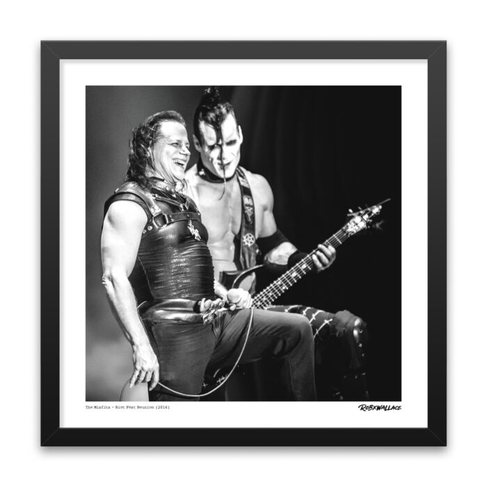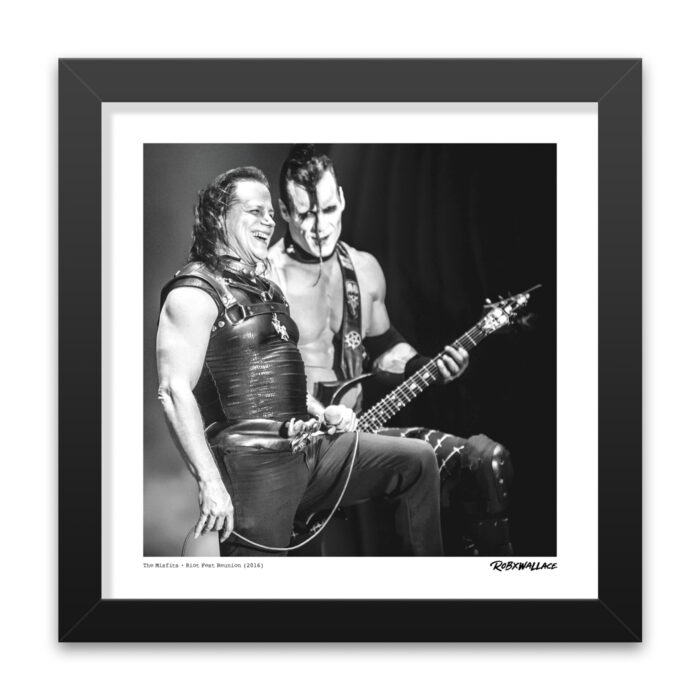 This shot captures an unforgettable moment during the Misfits’ historic reunion at Riot Fest in Denver, Colorado, on September 4, 2016. Seeing Glenn Danzig and Doyle Wolfgang von Frankenstein on stage together after more than three decades was something fans never thought they’d witness again. Their chemistry was electric, and this image shows a rare glimpse of them sharing a lighter moment amidst the chaos of their thunderous set.