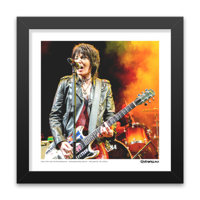 This shot of Joan Jett was taken during her electrifying performance at The Hollywood Palladium in Los Angeles, CA, back in 2016. It was a night that fused rock and roll with high fashion, as Joan and her band, The Blackhearts, took the stage for the Yves Saint Laurent after-party.