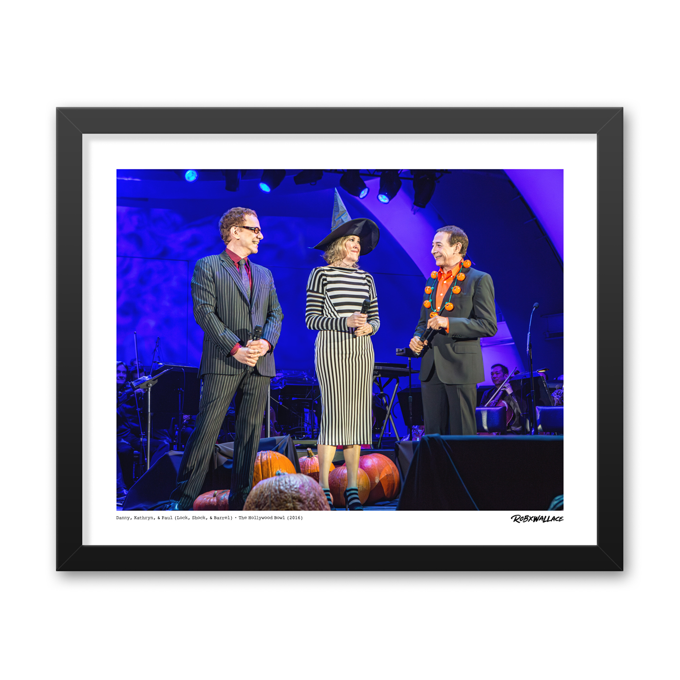 This photo captures an unforgettable moment from The Nightmare Before Christmas: Live to Film concert at The Hollywood Bowl in 2015. On stage, Danny Elfman, Catherine O’Hara, and Paul Reubens reprise their roles as Jack Skellington, Shock, and Lock, bringing Tim Burton’s classic film to life with a full orchestra.