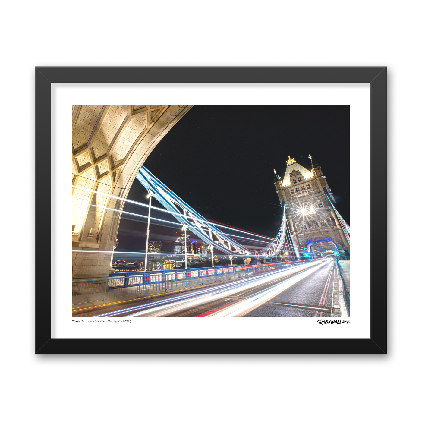 I shot this image of Tower Bridge on a summer night in June 2022, during what felt like a delirious final push of a 70-DAY TOUR with Ignite, Ho99o9, NOFX, and Pennywise that had taken me all over Europe and the US. I had less than 48 hours in London, crashing in some crappy hotel, running on fumes, but I wasn’t going to miss this shot. On my last night, I met up with fellow music photographer Nick Sayers and got pizza at Purezza in Camden, then rode around London checking out Fred Perry gear. Exhausted but determined, I rode back to my hotel to grab my gear, parked my rental Lime bike on the side of the bridge, set up my tripod halfway into the street, and took this shot before heading back to my room for a quick four-hour sleep before catching multiple shitty flights back to California. Standing beneath its towering structure, I wanted to capture more than just a landmark—I wanted to freeze a moment in time that reflected both the history and movement of London itself. Designed by Horace Jones and engineered by John Wolfe Barry, Tower Bridge has been an unmistakable piece of London’s skyline for well over a century, an enduring testament to the city’s architectural ambition.
