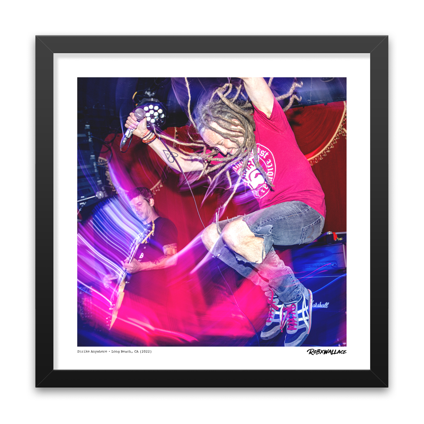 This shot captures Thomas Barnett of Strike Anywhere mid-air at Alex’s Bar in Long Beach, CA, on May 11, 2022. If you’ve ever been to a Strike Anywhere show, you know Thomas doesn’t just perform—he launches himself into every song with relentless energy. In the background, Matt Smith is locked in on guitar, driving the melody forward as the chaos unfolds around him. The motion, the intensity, the urgency—it’s everything this band stands for, both sonically and politically.